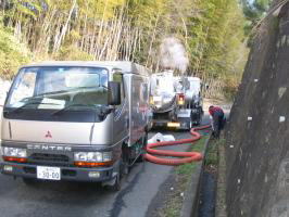 下水道管及び側溝はもちろん、暗渠等、高圧洗浄作業とあわせて管内に堆積した土砂等を強力吸引車にて吸引し、
