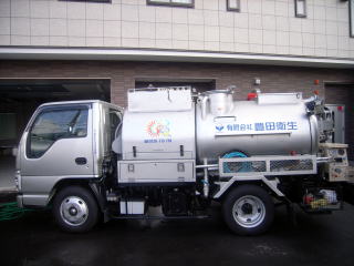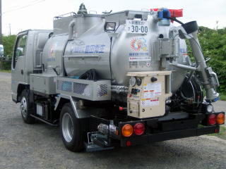 高圧洗浄車と強力吸引車で、側溝清掃や排水桝清掃など種々多様な使い方があります又、浄化槽内清掃等にも使用する時もあります。